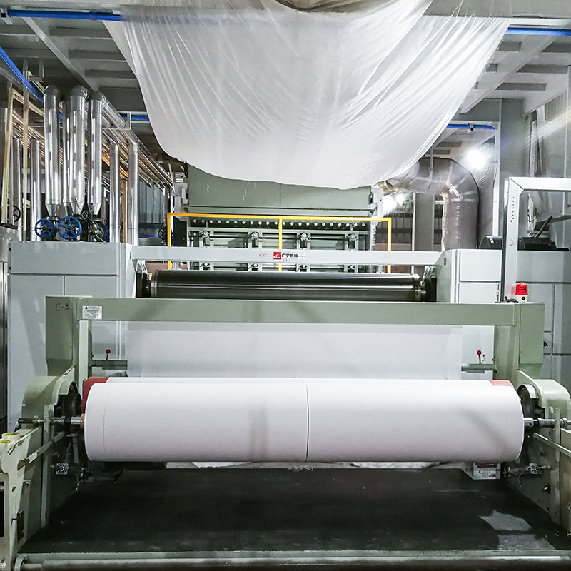 Processus de rotation: la fonte colorée est ensuite tournée en filaments par le faisceau de rotation, formant la base du tissu non tissé.
